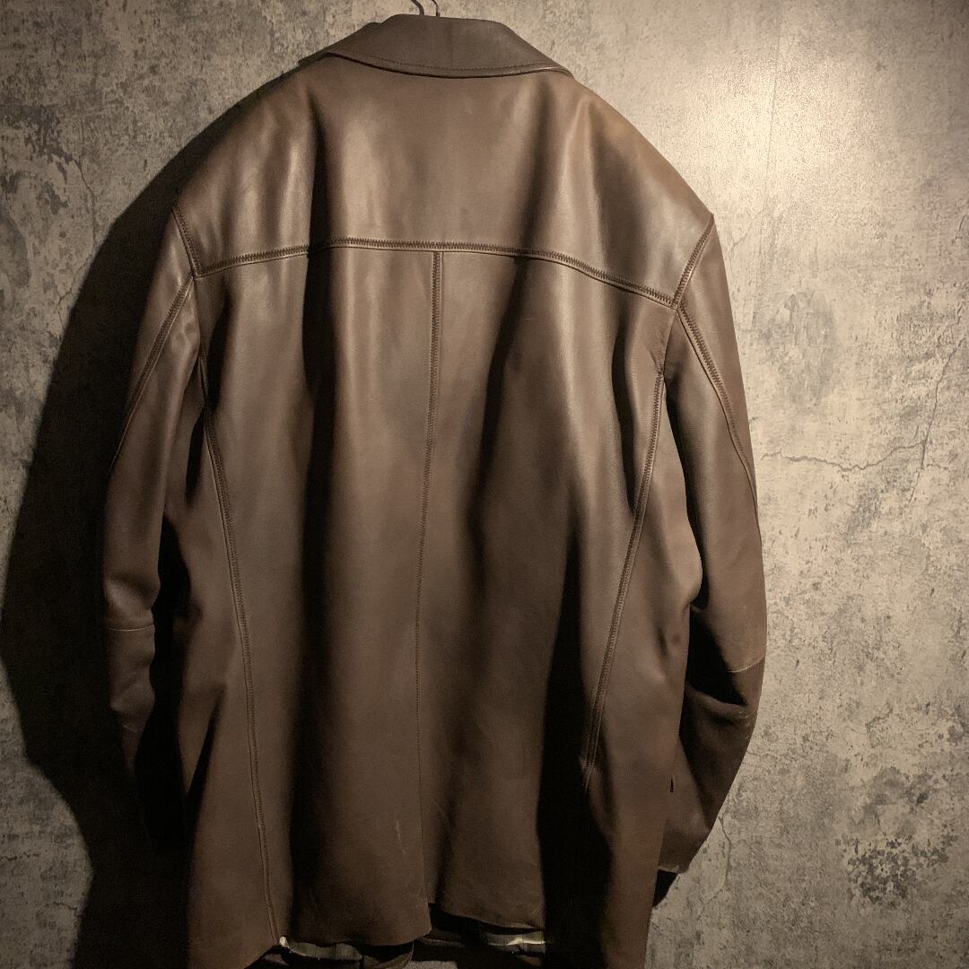 上質な羊革を使用したレザーのテーラードジャケット。