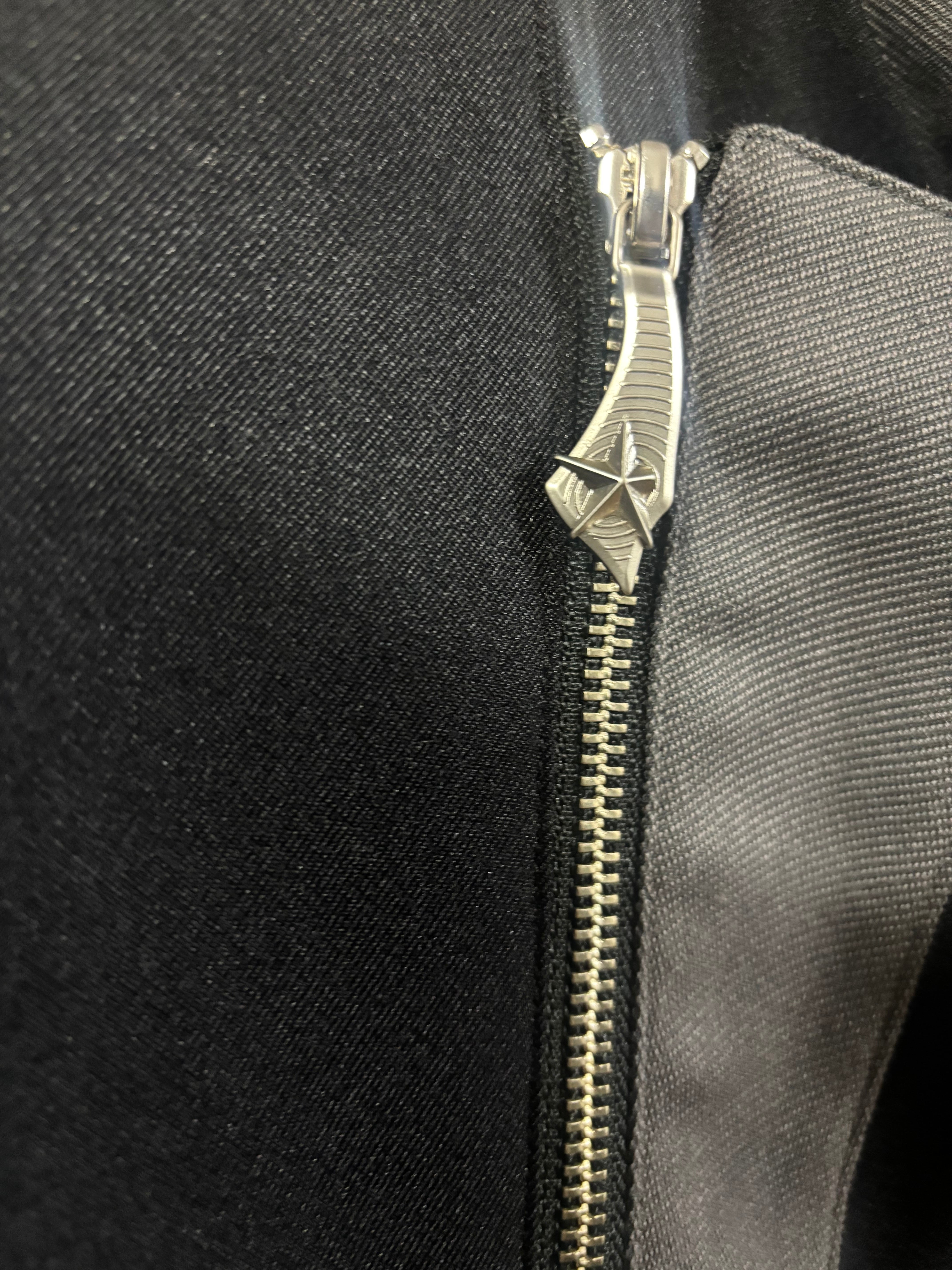 3way仕様で開けてライダースとして着ることもでき、ジップを上まで絞めるとさらにコンパクトな見た目に。またzipと反対側にスナップボタンが施されているため、そちらで留めてジップを目立たせるような着こなしも可能。